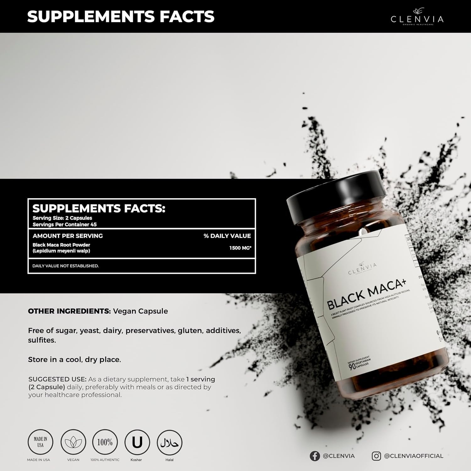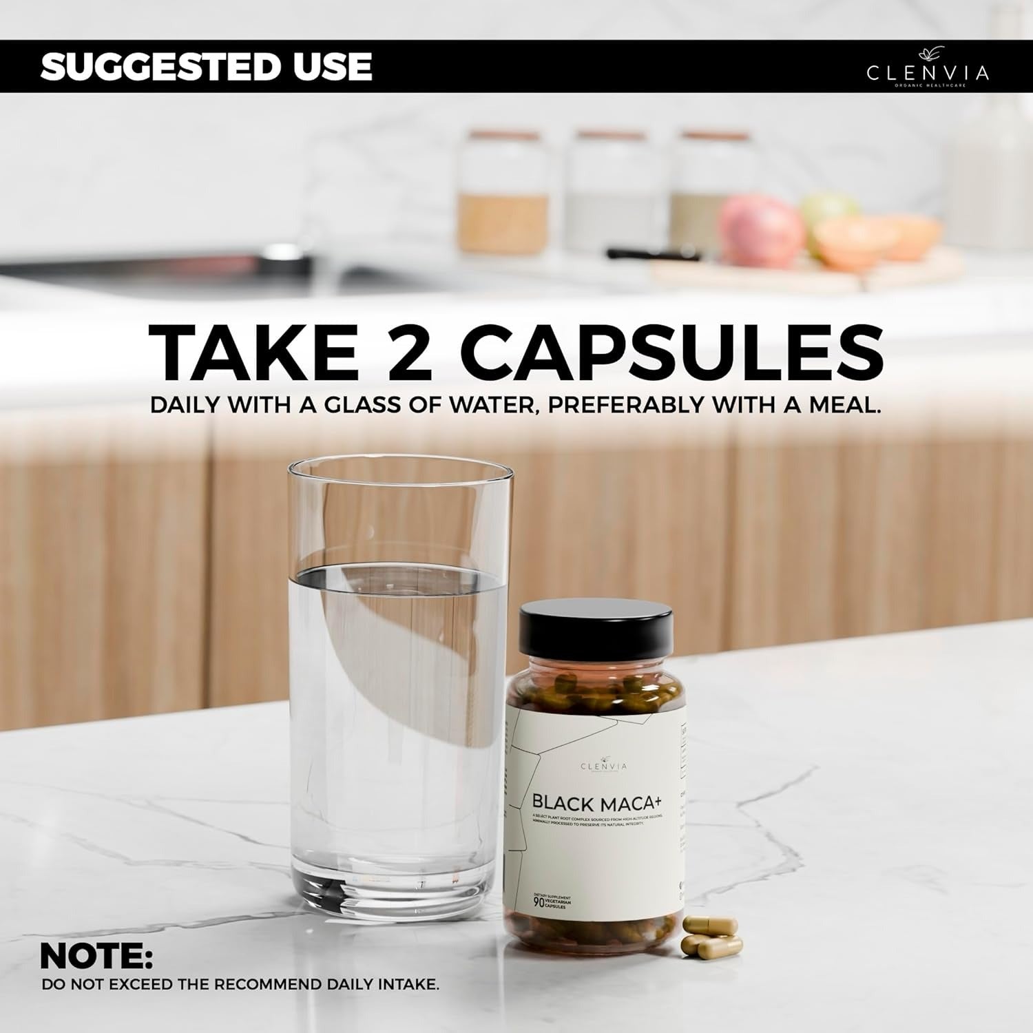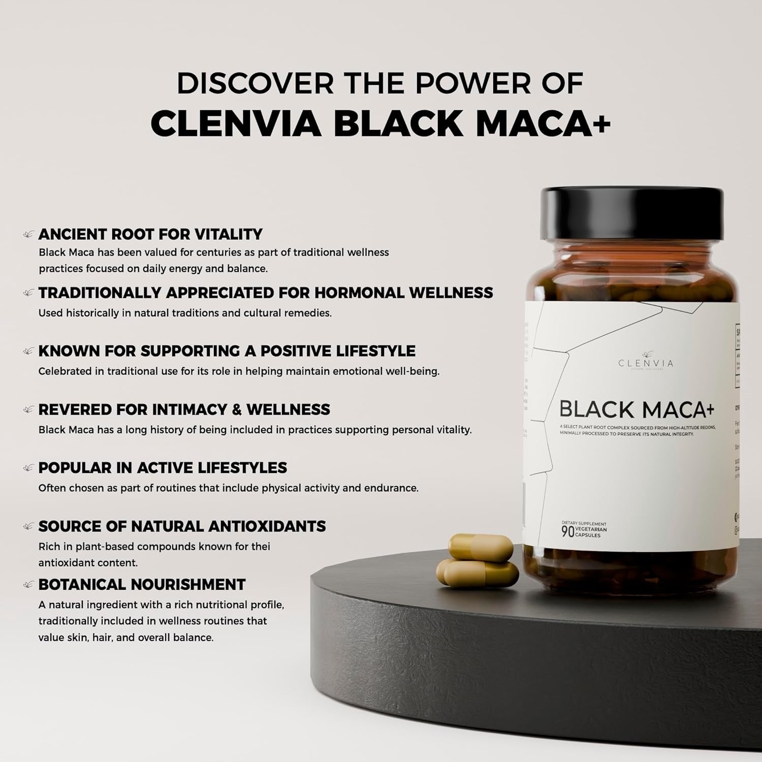 Unlock the natural power of Clenvia Black Maca+ Capsules, a high-potency 1500mg formula crafted from premium Peruvian black maca root powder. Known as one of the most nutrient-rich adaptogens, black maca has been traditionally used for centuries to support energy, stamina, hormone balance, and vitality.